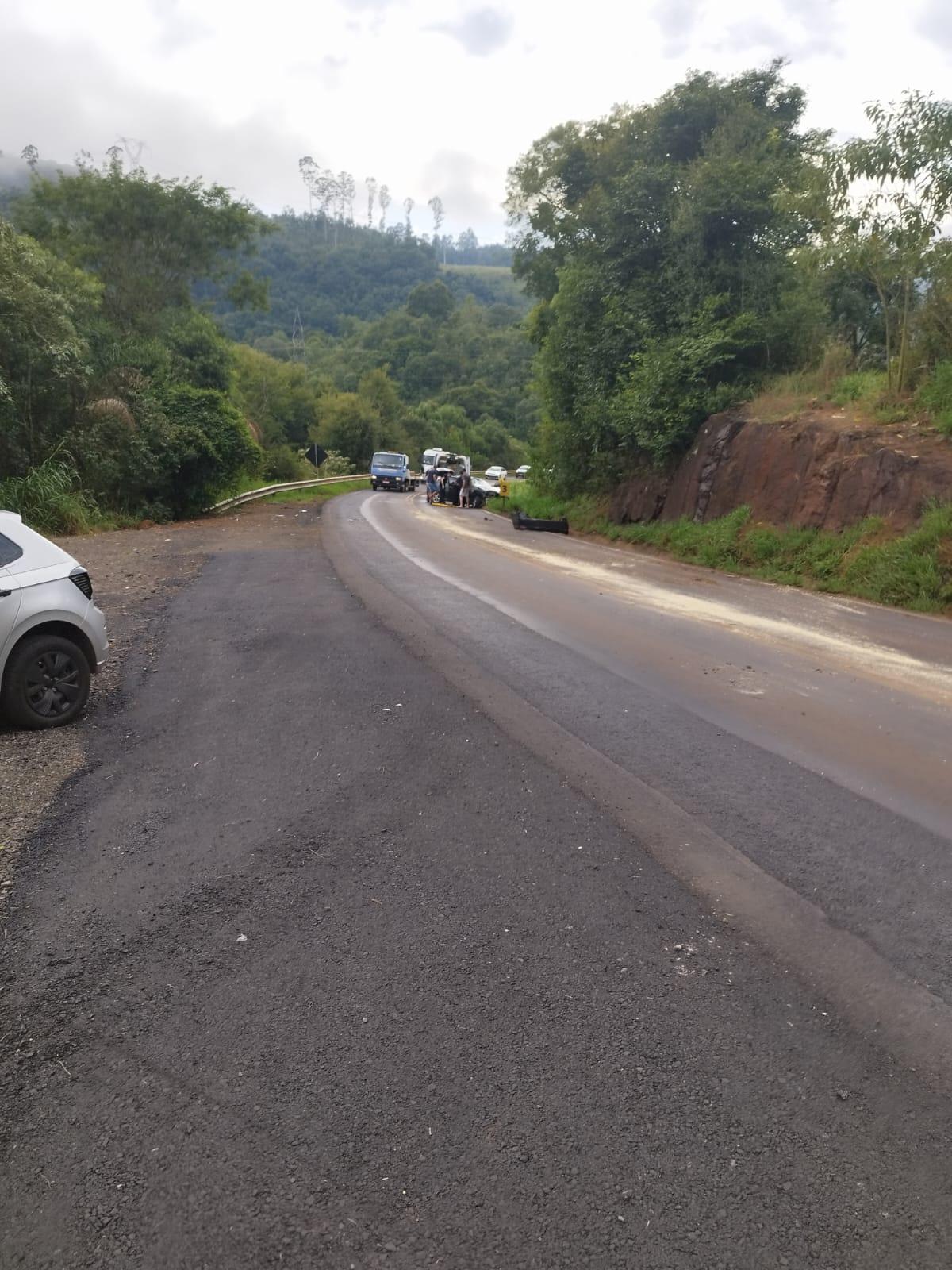 Com o trecho escorregadio, a situação acabou ocasionando um segundo acidente. Na SC-155, no km 78, um carro capotou após o motorista perder o controle do veículo devido ao óleo espalhado sobre a rodovia.