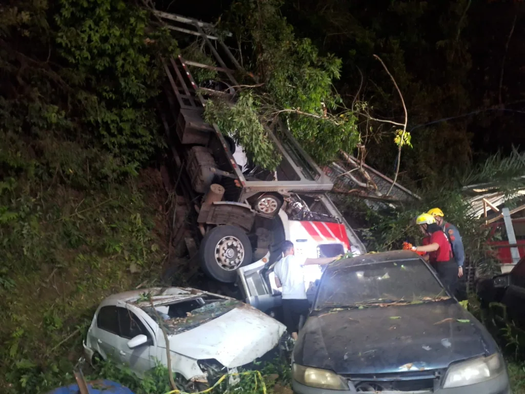 Os bombeiros atenderam a ocorrência e encaminharam o motorista com ferimentos de média gravidade ao Hospital São Roque. A Polícia Militar atuou na segurança do local.