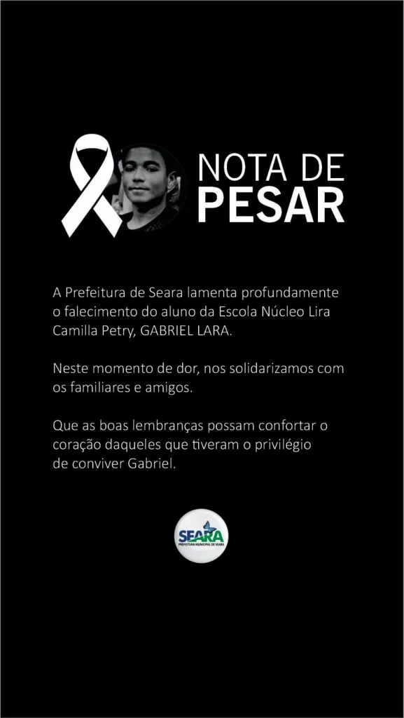 Nota de pesar da Prefeitura de Seara: